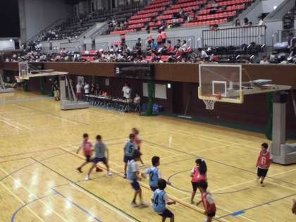 8日(火)ハンナリーズアリーナで行われたバスケ全市交流会で,川岡東チームは最後まで走り抜き,見事な勝利を納めました。