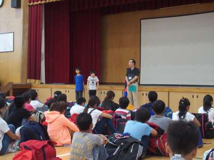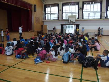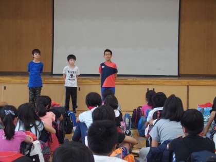 楽しみにしていた『花背山の家 長期宿泊学習』がいよいよ始まります。天気はあまりよくないのですが,子どもたちの顔はすっきりとしたよい笑顔です。これから始まる3泊4日の宿泊学習。楽しいことやわくわくすることなどたくさんの経験が子どもたちを待っています。出発式での校長先生や白崎先生,世良先生のお話を聞いて,気持ちがピリッとひきしまった5年生でした。