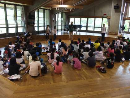 そして入所式です。これから4日間お世話になる山の家の先生方に,しっかりとあいさつをしました。山の家の先生からは早速,『本館に入るときにとても静かに入ってこれましたね。』とほめていただき,まんざらでもないご様子の5年生でした。