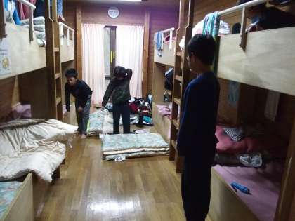 昨夜はぐっすりと眠ったようで,みんなさわやかな笑顔で起きてきました。起きてまずすることは,寝具をきれいにすること。さわやかな笑顔で,さわやかに寝具を整理していました。さすがさわやか5年生!