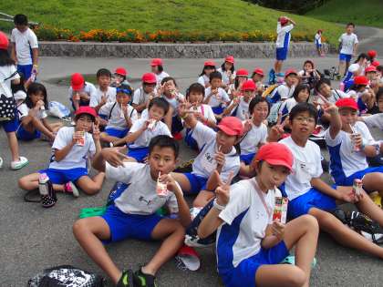 疲れた体にリンゴの果汁が染みわたり,5年生のパワーは充電完了。そして次の活動へと向かうのでした。