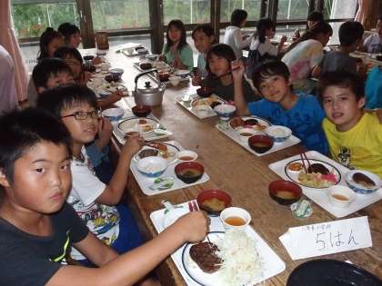 さて,午後の活動で体力のカロリーを消費した5年生。消費した分は摂取しなくてはいけません。このあとには,大一番が待っているのですから。