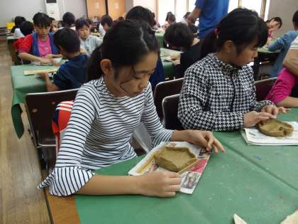 活動場所の研修室には,慎重かつ大胆に土を触っていく5年生の姿がありました。