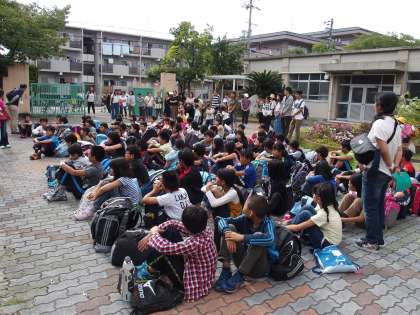 たくさんの保護者の皆様や先生方,低学年の子どもたちに迎えられ無事,帰校しました。