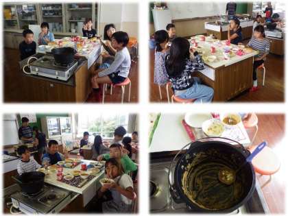 悪戦苦闘すること1時間とすこし・・・。おいしそうなカレーができあがりました。どれだけおいしかったかは,子ども達の顔と空になったおなべを見ていただくと分かると思います。
