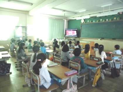 運動会が終わると学校は『学芸会』ムードにつつまれていきます。1年生の教室では,去年の学芸会の映像を見て学芸会に対する気持ちを高めていました。