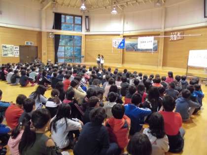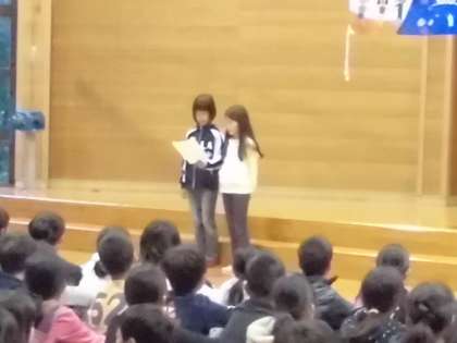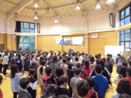 7時からは山階南小学校と合同の朝の集いです。代表の人が川岡東小学校の学校紹介をしました。2校ともしっかりと学校紹介をしていました。さすが!4年生!!