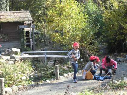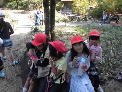 植物園では,1・2年生のグループに分かれて「クイズラリー」を行いました!水車では,ほっこり…。「水車は右周り?左周り?どっちかな?どっちかな?」全員クリア!!!正解は右回り!!!グループで正解した後はほっこりお茶タイム♪かと思いきや…!くっつきむしがたくさんついてグループで取るグループ…。優しい2年生が必死で取ってあげていました♡