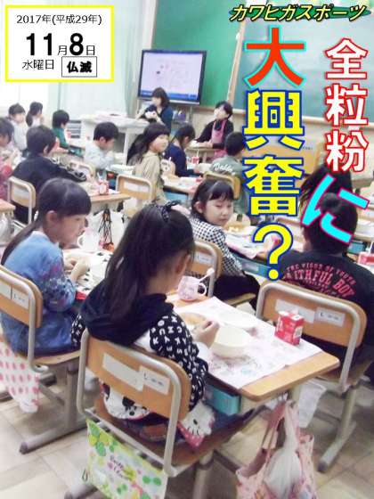 「給食にはいろんなパンがあるけれど,今月から新しいパンが仲間入りしたよ。その名も『全粒粉(ぜんりゅうふん)パン』です!」