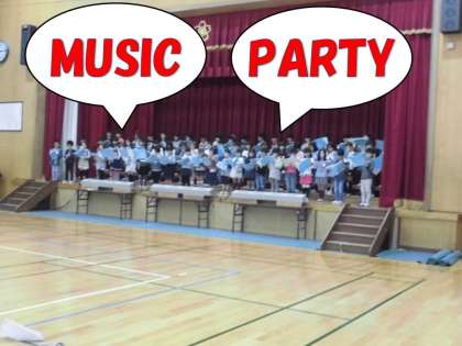 2年生の学芸会のテーマは音楽。ただ今日は音楽というようにも,セリフ中心の練習でした。少しでも声が小さいと『もっと大きな声で〜!!』という先生たちの激励の声が響きます。それに負けじと2年生も大きな声を出そうとがんばっていました。熱血指導の先生と熱血2年生。本番までにもっと大きな声が出るようになりそうです。