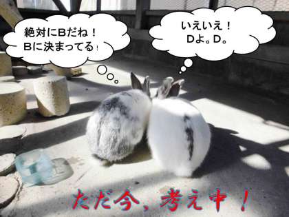 飼育小屋のうさぎ『アーサー』と『ユキ』がご飯を食べていました。では,ここで問題