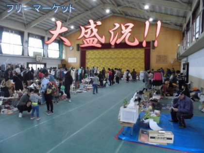体育館ではフリーマーケットが行われています。たくさんのブースには,それぞれ個性あふれる商品が並んでいます。しかも超お値打ち価格で!!思わぬ掘り出し物があるかもしれませんよ。