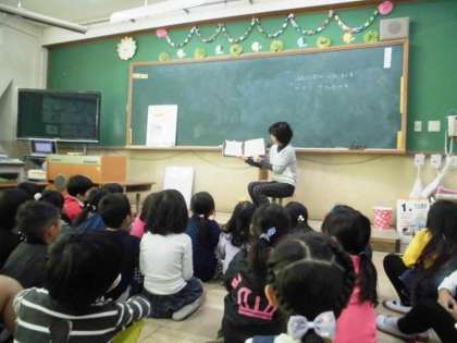『おひさま』の方々がとても上手に読んでくださるので,1年生はすぐに絵本の世界に引きこまれていきました。