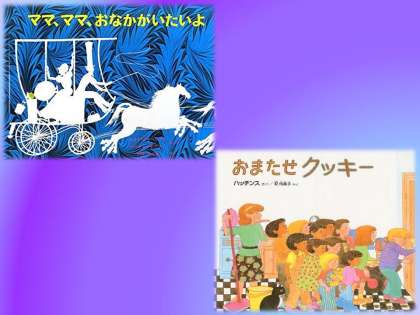 毎週月曜日は『おひさま』の皆さんによる読み語りです。1組は『ママ,ママ,おなかがいたいよ』,2組は『おまたせクッキー』というお話でした。