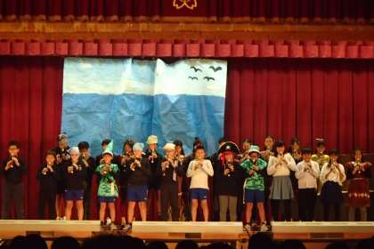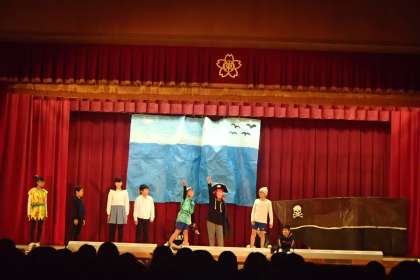誰もが,一度は会ってみたいと思った「ピーターパン」。行ってみたいと思った「ネバーランド」。そんなファンタジーの世界を見事に表現する6年3組の劇でした。