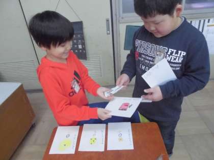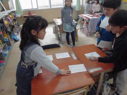 国語の学習で「おみせの人」と「おきゃくさん」にわかれてお店屋さんごっこをたのしみました。
