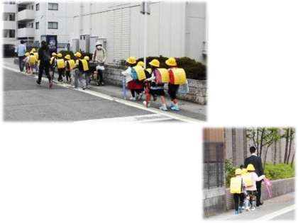 『さようなら』のあとは,1年生はみんなで集団下校です。コースごとに分かれて先生と一緒に下校します。安全に気をつけて,通学路を確認しながらみんなで下校しました。