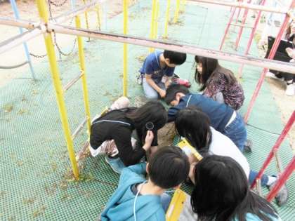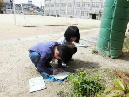 3年生になって始まる教科があります。その1つが理科です。今日は初めての理科の学習をしました。虫めがねを使って運動場などで色々な植物や動物を探しました。