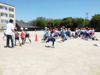 3年生の体育はリレーです。リレーで大切なことはバトンパス。リードの仕方をしっかりと教えてもらい練習です。最後はチーム対抗リレー。まだまだ始めたばかりですが,これからもっともっと練習して,バトンパスが上手になるといいですね。