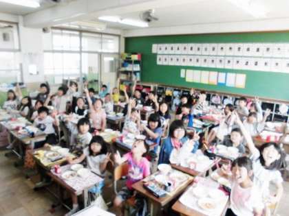 『なまぶしと厚揚げの煮つけ』という小学生にとっては,少し高いハードルのメニューのせいか,給食前の3年生は少しテンションが低め・・・。しかし,食べ始めると「うん?けっこうおいしいやん!」「お汁のお味がしみてるやん!」「今まで少し苦手やったけど,食べられるやん!」とばかりに,モリモリ食べていました。
