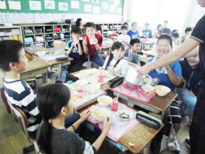 5年生の子ども達もあっという間に食べ終わり,おかわりをしていました。