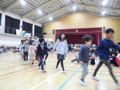 楽しかった1年生を迎える会ももうおしまい。1年生は6年生と一緒に笑顔で退場していきました。