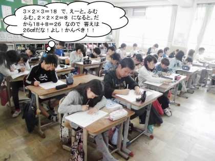 体積の学習をくりかえしてきた5年生。「体積が得意になってきた」という子も増えてきました。今日もどんどん問題を解いて,さらに体積が得意に(体積名人に)なっていく5年生でした。