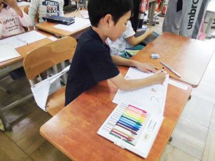 書き終わったあとは色ぬりもがんばりました。色ぬりもきれいにぬれるように練習していきましょうね。