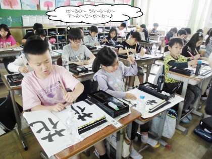3年生の書写で学習したことをふり返って,点画の筆使いに気をつけて書いていきました。