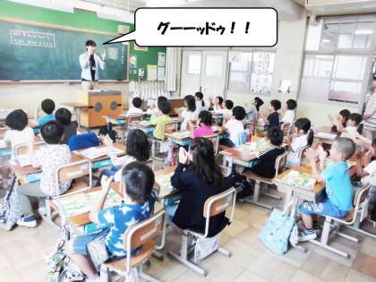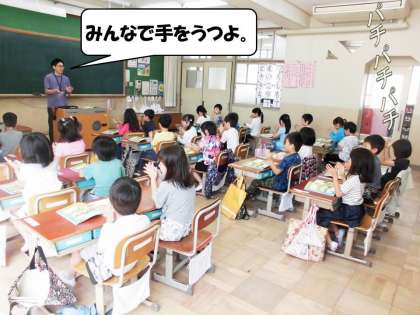 先生のうつ拍に合わせて,みんなで手をうちながら名前を呼ばれたら返事をしていきました。