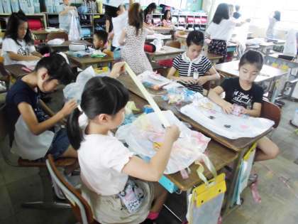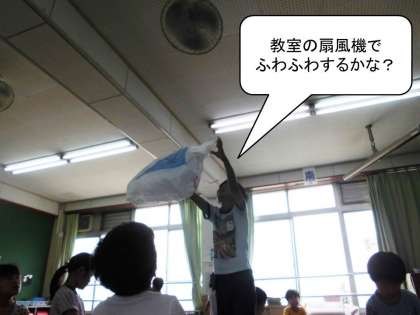 楽しそうなものが出来上がると,やっぱりふわふわ浮かべたくなった3年生。教室の扇風機でふわふわ体験をして,ご満悦の様子でした。