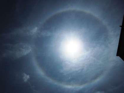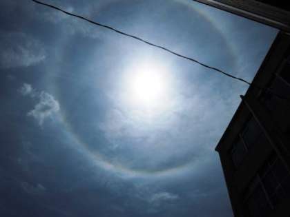 そうじ時間。空を見上げると太陽のまわりに光の輪ができていました。これは『日暈(ひがさ)』と言われるものだそうです。別名『白虹』とも言われるそうです。とってもきれいな日暈に子ども達も大歓声をあげていました。