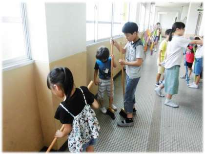その後の「にこにこそうじ」も上の学年の子が小さい学年の子に教えてあげるなど,あたたかい気持ちになる光景がいろいろなところで広がっていました。