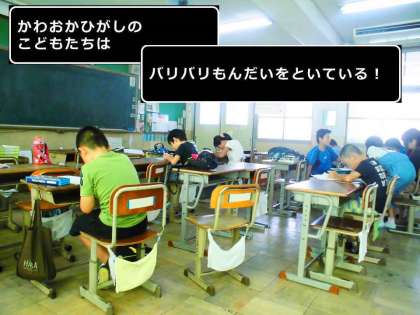 サマースクール2日目。夏休みの宿題でまだできていないところをやる子や,先生が用意したプリントをする子など,みんな一生懸命学習に取り組みました。この2日で子どもたちはかなりレベルアップしたようです。明日からもがんばりましょう!