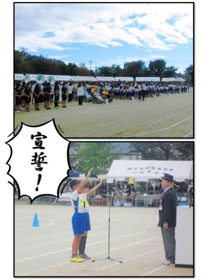 川岡東学区民体育祭が行われました。桂川中学吹奏楽部の演奏で各自治会のみなさんが入場しました。本校6年生児童による選手宣誓も終わり,区民体育祭がいよいよ始まります!!
