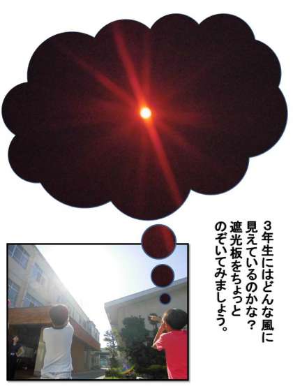 遮光板で見た太陽はなんだかかっこよくて,不思議なパワーがありそうな気がしました。