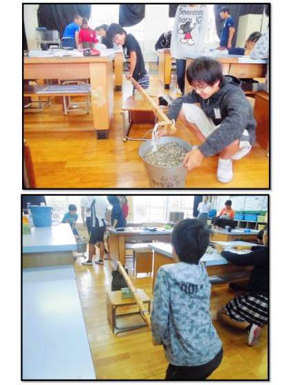 まだまだこの謎にせまる6年生。変える条件,変えない条件をみんなで考えて実験に入ります。支点から力点の長さ,支点から作用点の長さは一体どうすればよいのか?それは6年生に聞いてみてくださいね。