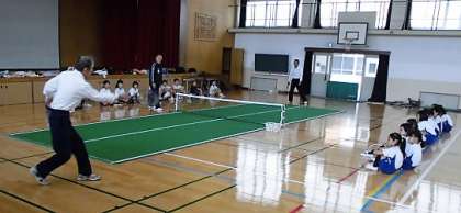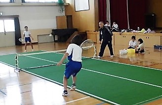 本日,10月のバウンドテニス教室がありました。11月の大会について教えていただき,試合の仕方について先生方にデモンストレーションを見せていただきました。みんなすごくやる気になって大会に向けた試合形式の練習に熱心に取り組みました。