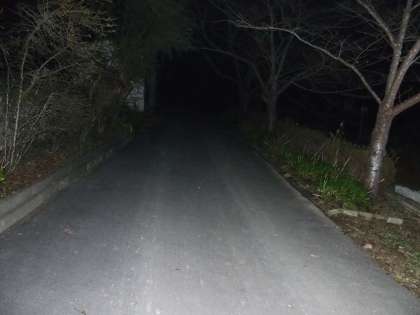 ナイトウォークです!肝試しではありません!!・・・でも,こんな暗い道を歩くんですねえ・・・。