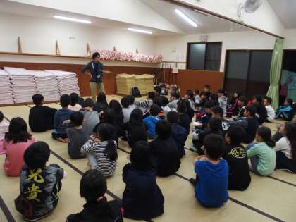 最後に先生から今日の総括と,明日の活動についての説明がありました。昨日よりも格段に成長した姿を見せてくれた4年生。なんだかこの2日間で,たくましくなったような気がします。