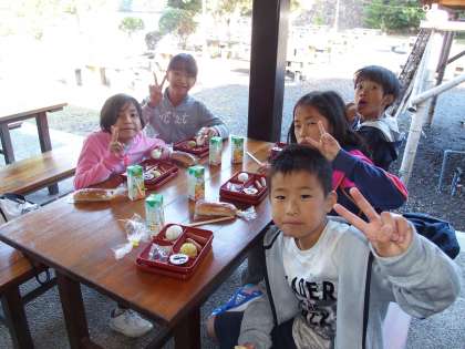 みさきの家での最後の食事です。今日は野外炊事場で食べました。