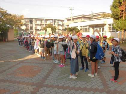 絶好のお天気に恵まれ3年生は校外学習に出発しました。行先は京都タワー。その後梅小路公園に行き,鉄道博物館を見学して帰ってきます。しっかりと勉強してくるんですよ〜!!