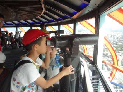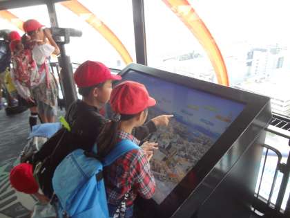 10月19日(金),社会見学で京都タワーと京都鉄道博物館に行ってきました。社会科で学習した京都市のまちの様子を京都タワーから見ました。