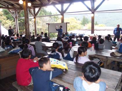 いよいよ野外炊事が始まります。第1炊事場にきっちり5分前行動で集合してきます。山の家の先生から野外炊事のルールを聞いて,いよいよ野外炊事・・・スタートです!