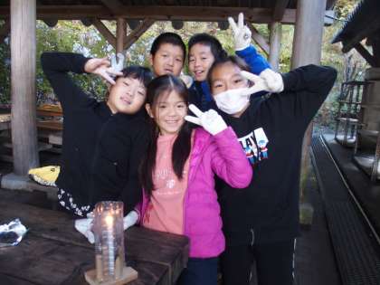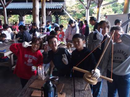 見てください。火を手に入れた5年生の姿を!!火をつけるのにこんなに苦労したことはなかったので,喜びもひとしおです。