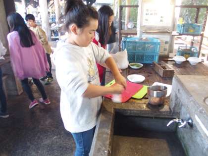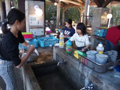 かまど班以外の人がまな板や包丁を洗ったり,流しをきれいにしたりと休むことなく働いているではありませんか。『自分にできることは何か?』それをしっかりと考えて動いている姿,すてきやん!!