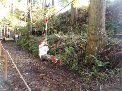 なかなか難易度の高いアスレチックで,『こわいー!』という子もいたのですが,みんな『笑顔』で楽しんでいました。