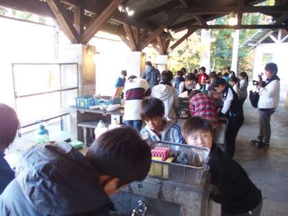 3日間で3回も野外炊事をしました。ロッジの次に長い時間いた思い出の場所です。感謝の気持ちをもって,みんなで『協力』しながら片づけをしていきました。