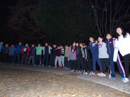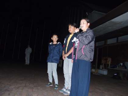 キャンプファイヤーは終わりの時を迎えようとしています。最後にはみんなで歌を熱唱しました。