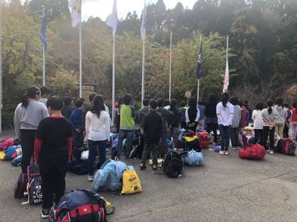 退所式を行いました。長いと思っていた3泊4日も振り返るとあっという間でした。まだまだ山の家にいたいという気持ちが強くなりつつの退所式です。すばらしいお天気と,大自然の中でいろいろな思い出ができました。お世話になった所員さんにもしっかりとお礼を言いました。